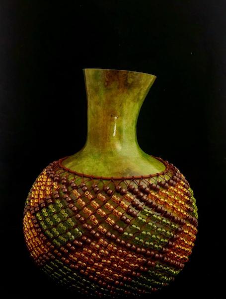Mother of green day Colors- lime green/emerald green/sunburt/brown Row- 23-doudle Ring- 20″ circumference- 39″ Intervals- 5/8″ weight- 2.9lb Height – 17″ Design- Home decor beads- 1656 total string- brown thickness – 2/8″